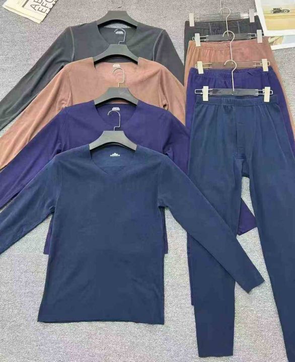 ☕️秋冬套装️男装德绒V领保暖套装18000套全清9.9 元,200套起分货10.9元,码数M到5XL高弹力,精品独立包装,整款多色V领混搭出货,双面德绒无痕内衣男士保暖套装双面绒防寒保暖长袖t恤秋衣秋裤套装。 货号:24862