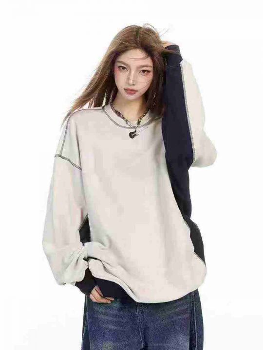 ☕️纯棉毛圈卫衣美式复古圆领拼接撞色插肩卫衣女春秋款上衣287件全清8.8元 分货9.9元 码数S- XL,单款单色,独立包装[庆祝][庆祝]
