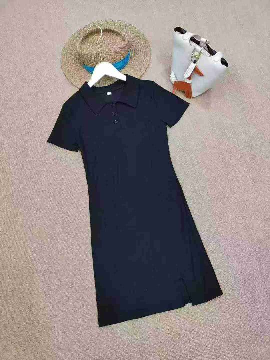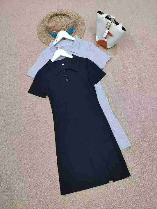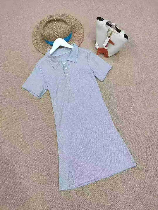 [月亮]:夏季休闲Polo领修身包臀连衣裙