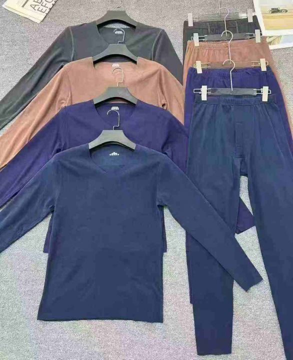 ☕️秋冬套装️男装德绒V领保暖套装18000套全清9.9 元,200套起分货10.9元,码数M到5XL高弹力,精品独立包装,整款多色V领混搭出货,双面德绒无痕内衣男士保暖套装双面绒防寒保暖长袖t恤秋衣秋裤套装