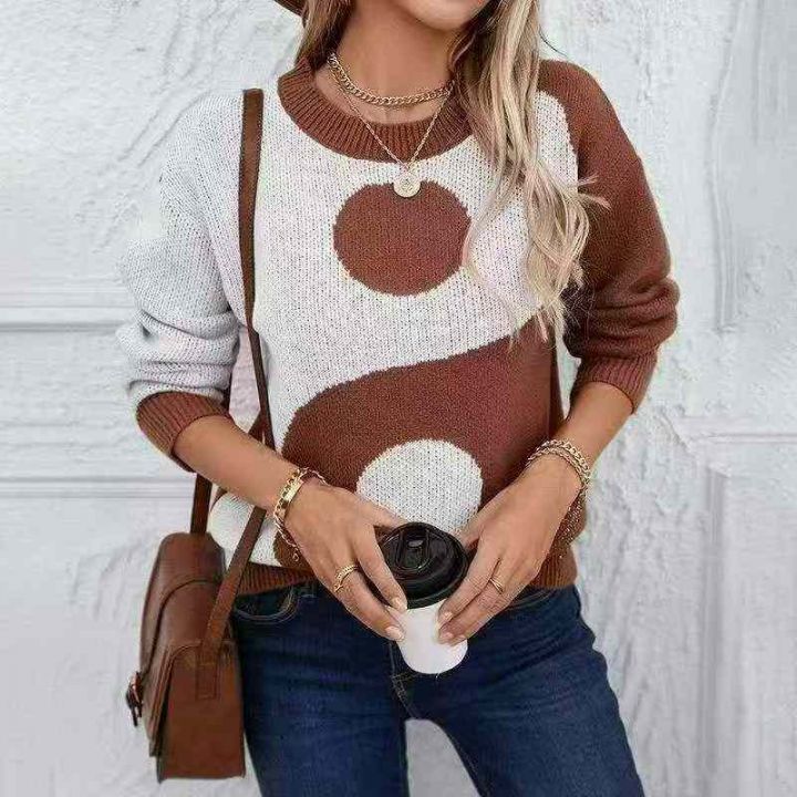 秋冬新款外贸跨境女式毛衣欧美宽松复古套头撞色毛衣,独立包装,码数S--XL码,148件,全清6.9元超低价秒杀!。 货号:24862