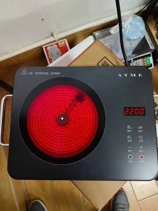 ATME超薄电陶炉 采用全黑晶面板触摸 国标大功率2200W 3小时自由定时 轻松烹饪 带高温hot提醒 4D防水设计 双层包装现货800台