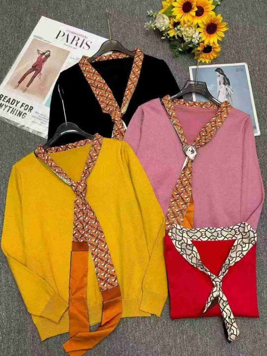 秋冬新款独特超好看碎花飘带V领时尚洋气针织套头毛衣...