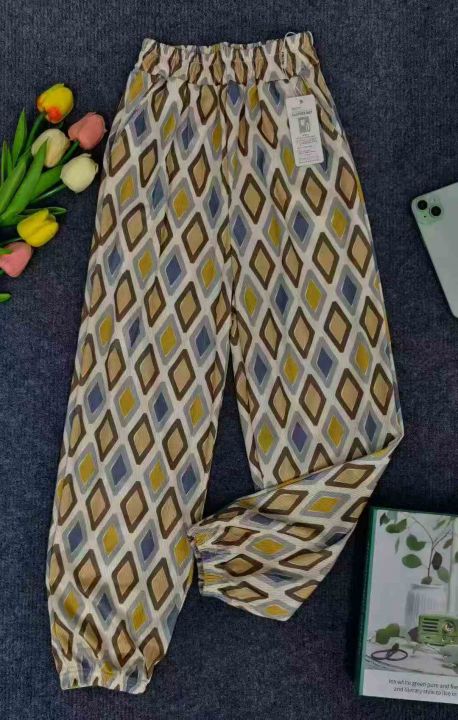中大童时尚印格冰丝裤,面料冰爽丝滑垂感有弹力,98件...