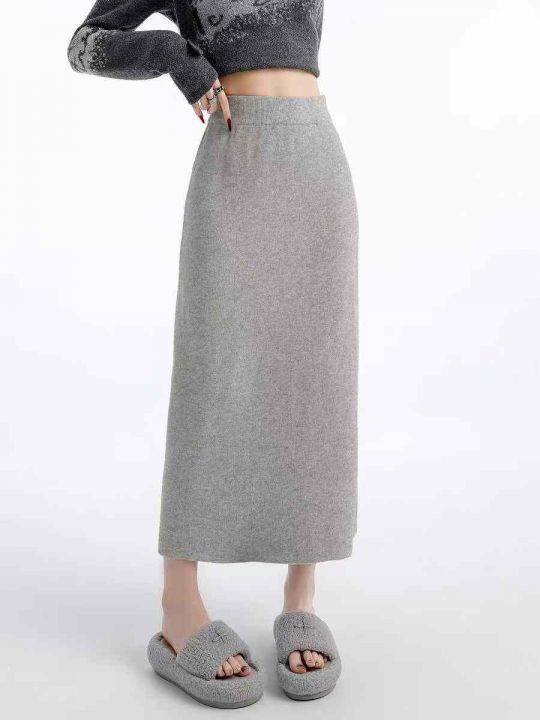 ☕️灰色高腰包臀针织半身裙女秋冬新款直筒显瘦中长款...