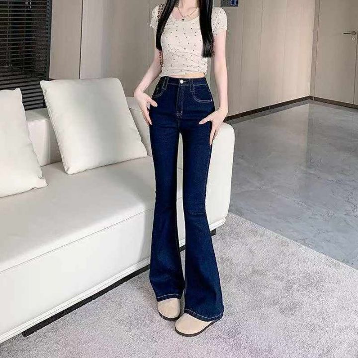 春季新款高弹力网红复古深蓝色微喇叭牛仔裤,独立包装带腰卡,码数S--L码,...