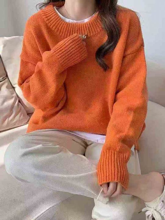 ☕️橘色套头毛衣35件全清10元,均码,宽松版,独立包装,毛衣宽松外穿秋冬...