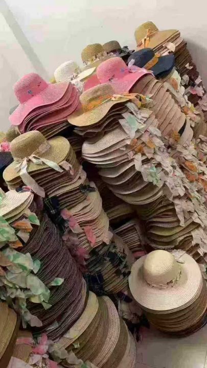 20000顶新款沙滩度假碎花蝴蝶结帽子海边防晒太阳帽夏季法式平顶草帽礼帽 4.99清 分货加0.5
