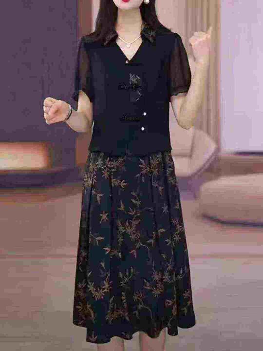 高档复古妈妈假两件连衣裙大码女装遮肉遮胯显瘦裙子,...