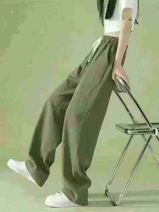 全清7.9美式复古运动裤女2025年新款显瘦阔腿宽松直筒休闲卫裤,大货军色为...