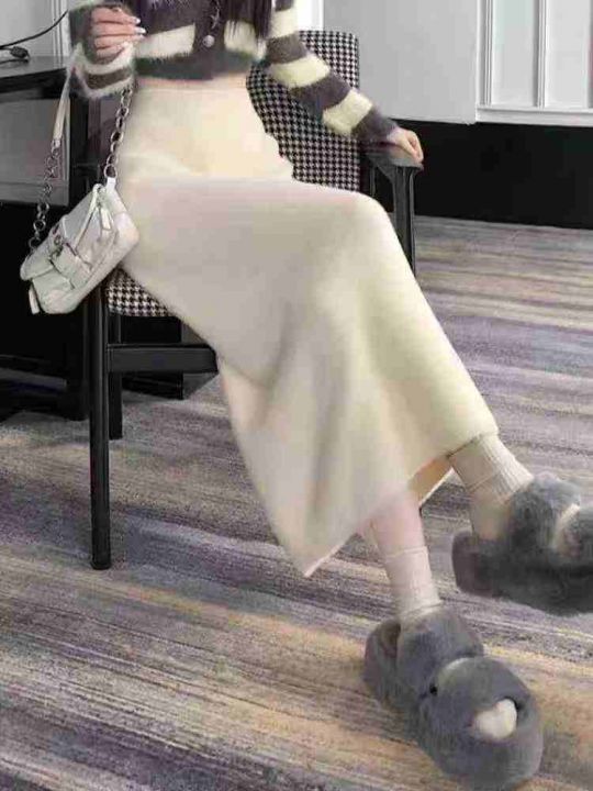 ☕️水貂绒半身裙女春秋季毛线针织高腰显瘦a字遮胯一步包臀长裙70件全清12.8元,均码,单款白色,高弹力,独立包装[庆祝][庆祝][庆祝]