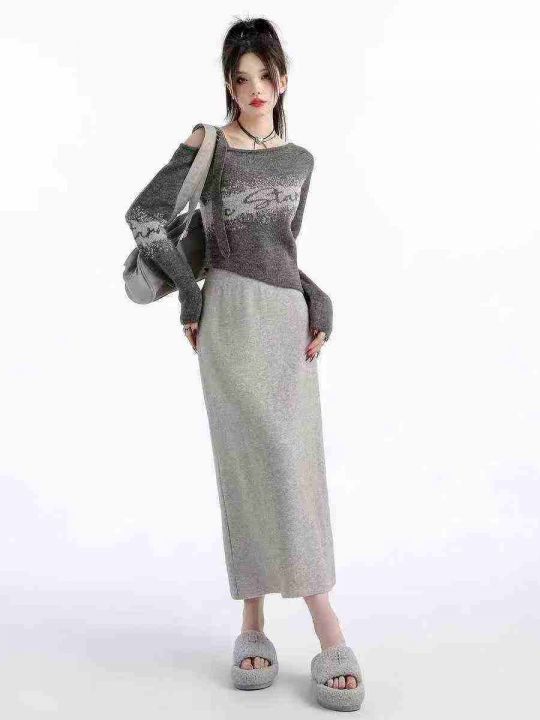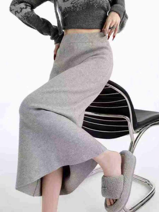 ☕️灰色高腰包臀针织半身裙女秋冬新款直筒显瘦中长款...