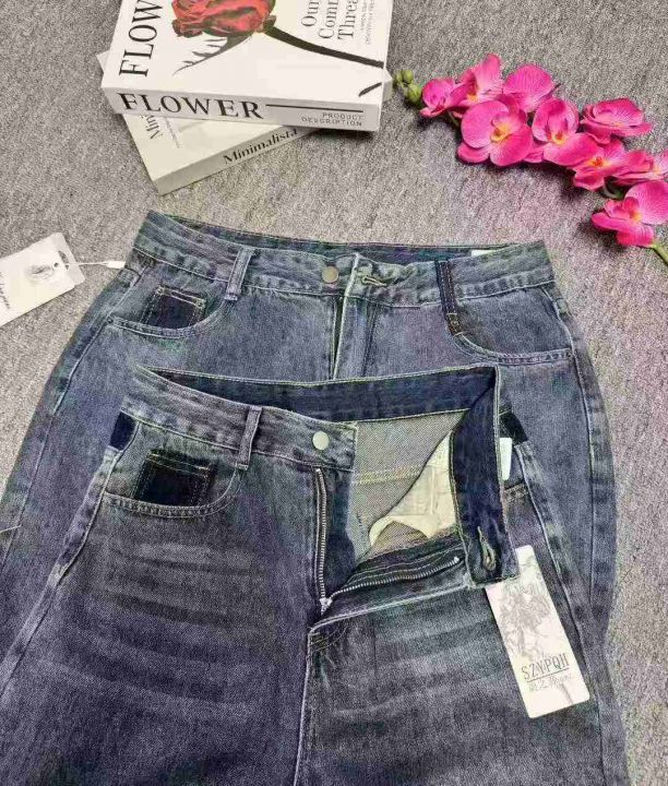 撞色口袋高腰阔腿显瘦牛仔裤女,图片款两个整款1300件...