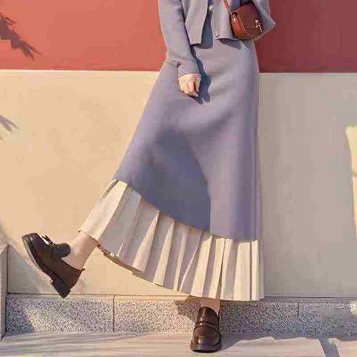 ☕️软糯针织半身裙衬裙内搭秋冬新款假两件打底百褶裙...
