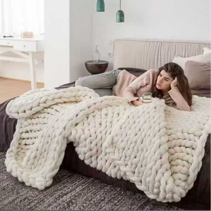 200条手工编织厚实午睡毯,沙发毛线毯子,尺寸100*80...