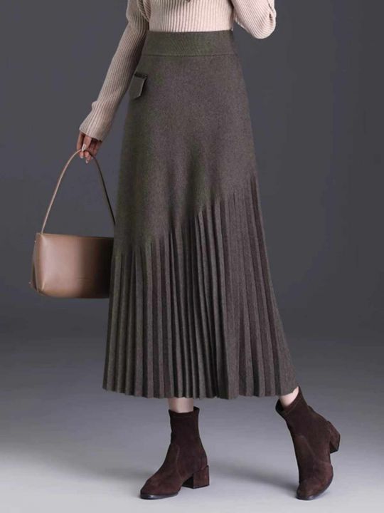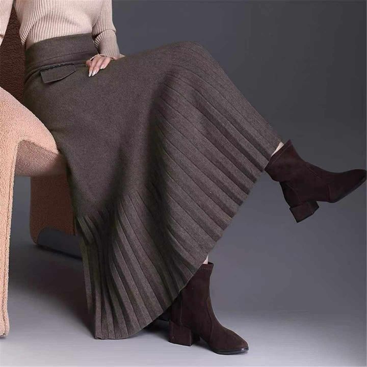 秋冬新款复古高腰褶皱百搭宽松气质针织半身北极绒百褶毛衣长裙,独立包装,均码面料软糯舒适弹力大,445件,全清5.9元超低价秒杀!分货加一!
