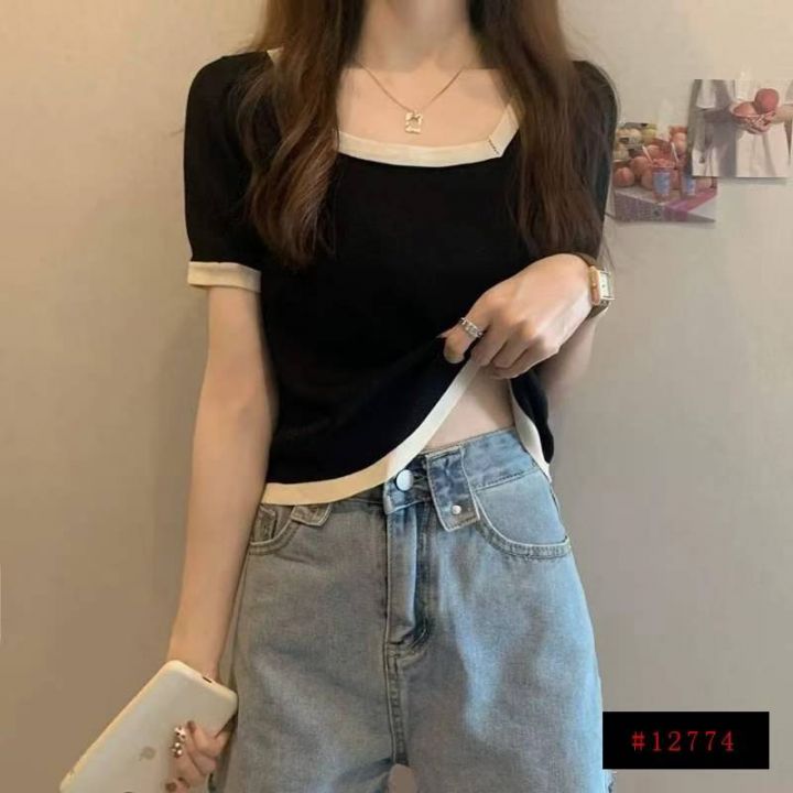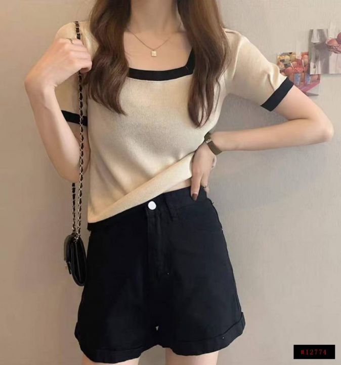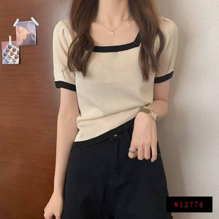 夏季新款大码宽松弹力显瘦方领冰丝针织短袖,独立包装,均码面料柔软舒适弹力,宽松版,单款4色米色黑色多,5300件,全清5.9元超低价秒杀!分货加一!@_@