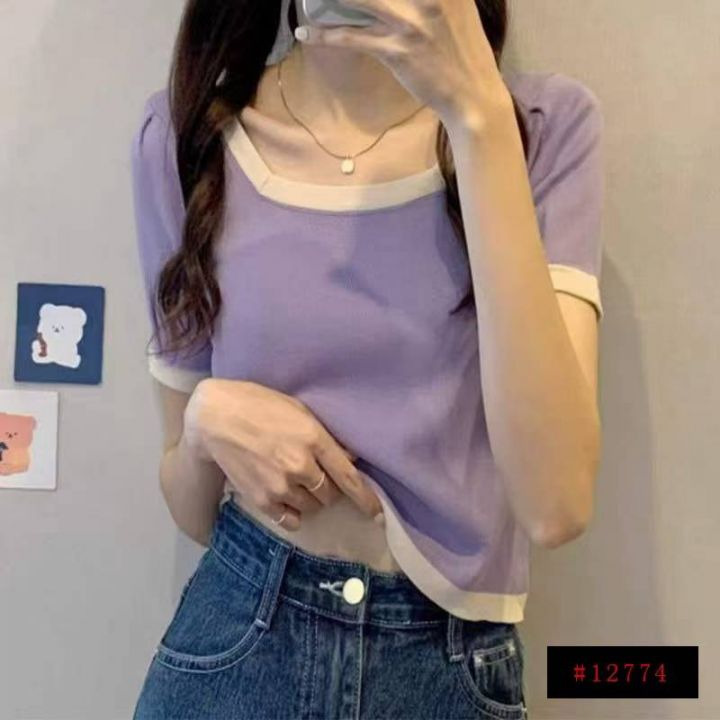 夏季新款大码宽松弹力显瘦方领冰丝针织短袖,独立包装...