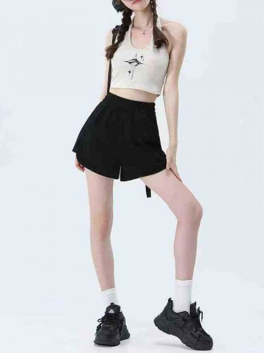 高腰毛呢短裤女春秋冬新款外穿宽松显瘦休闲阔腿靴裤子,独立包装,均码,210件,全清4.5