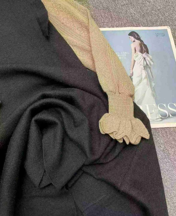 秋冬新款韩系气质荷叶边假2件复古宽松慵懒风针织毛衣...