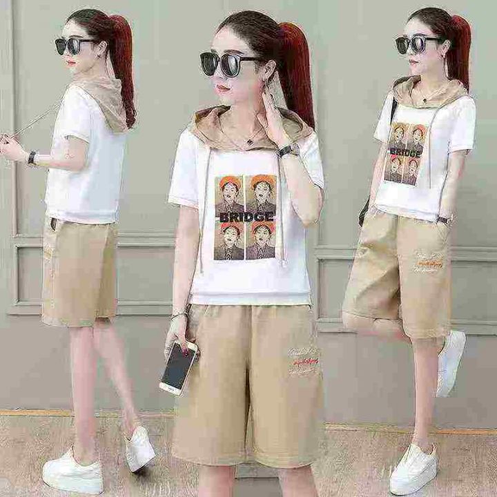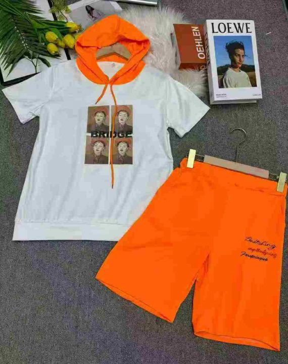 宽松韩版显瘦时尚印花运动服套装女夏天两件套洋气连帽短袖休闲服,独立包装,码数1-6,数量276套,货号129#7