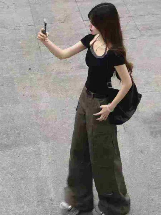 ☕️美式甜辣妹黑色挂脖短袖t恤300件全清8.8元,单款...