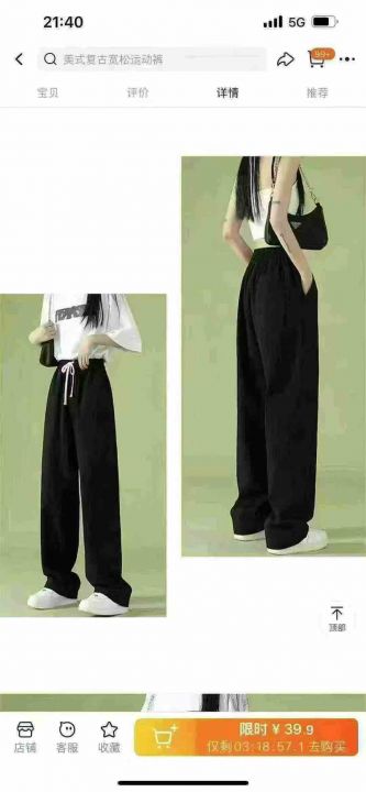 全清7.9美式复古运动裤女2025年新款显瘦阔腿宽松直筒...