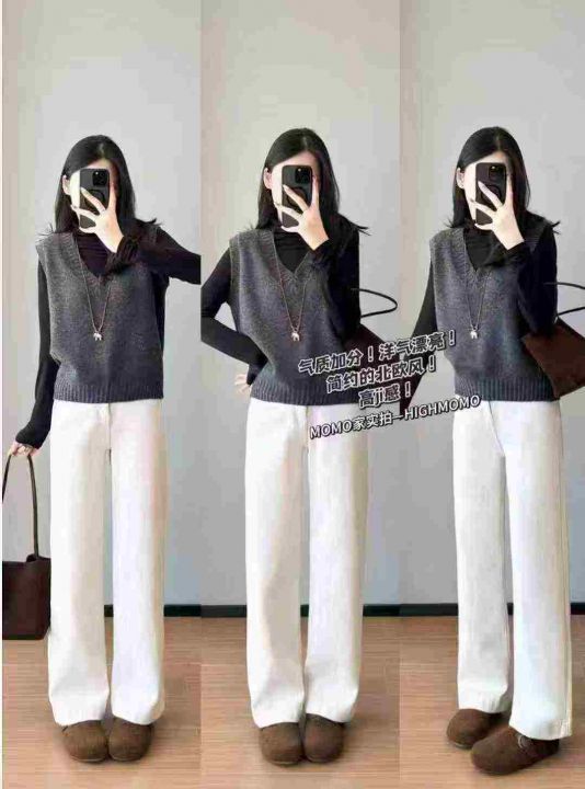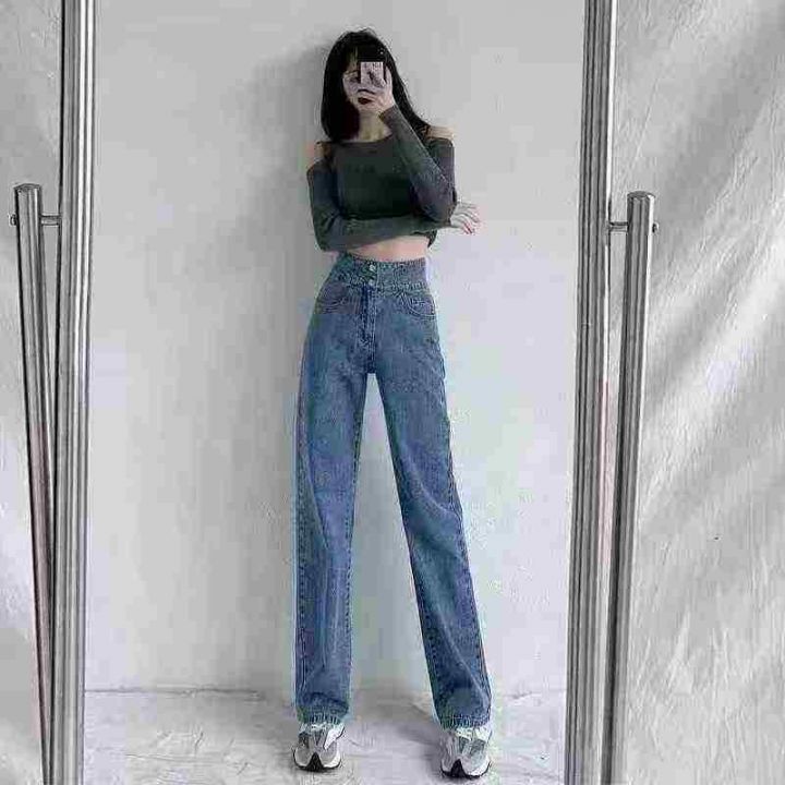 阔腿牛仔裤新款秋高腰宽松显瘦设计感交叉小众直筒长裤150件,单款两色,独...