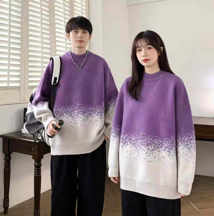 秋冬新款加厚男女同款渐变色圆领套头毛衣,独立包装,均码面料软糯厚实,宽...