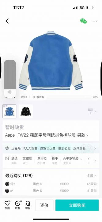 60件APE夹克。 货号:32539