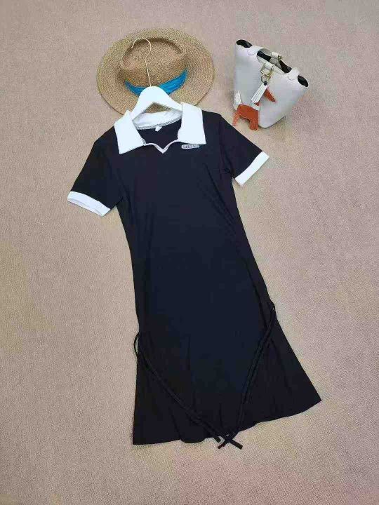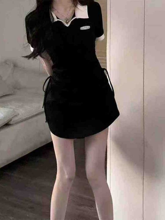[月亮]:纯欲Polo领抽绳收腰显瘦连衣裙