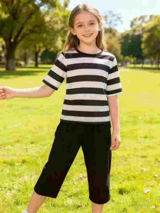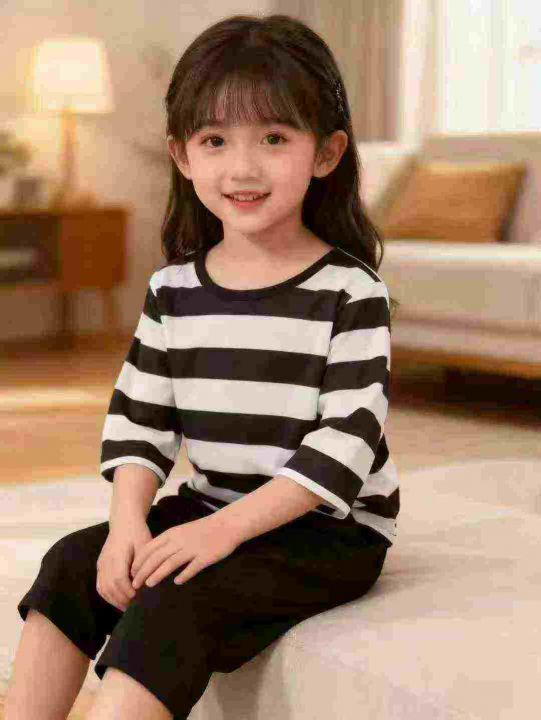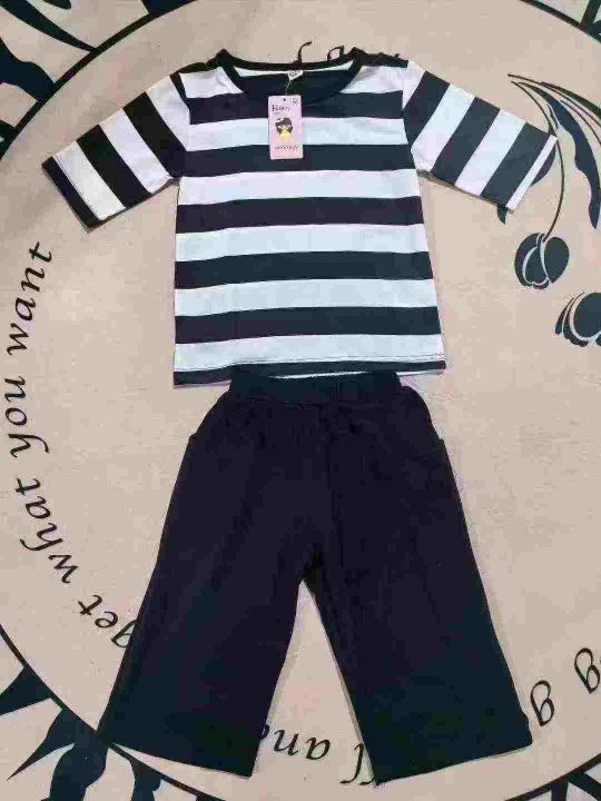 全清6.8 95件女童横条纹短袖短裤套装,单款单色,码...