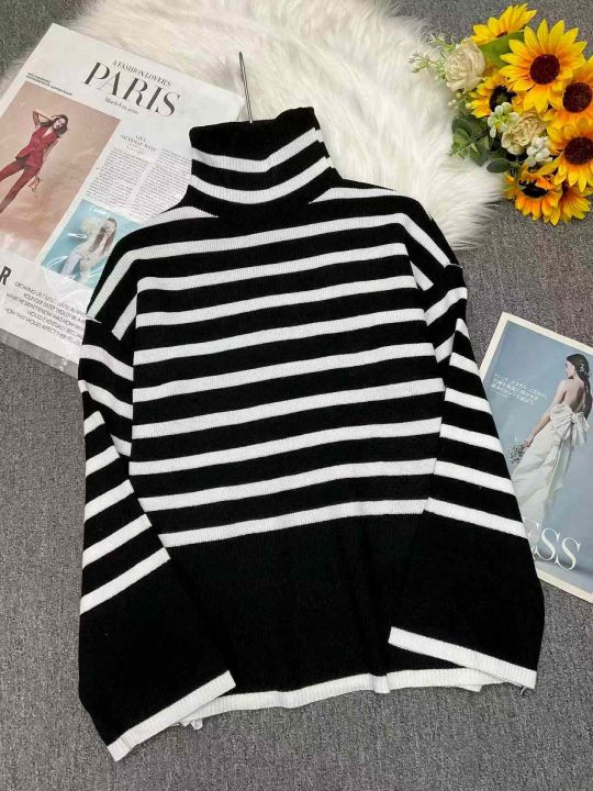 秋冬新款宽松慵懒风百搭撞色条纹针织套头毛衣,独立包...