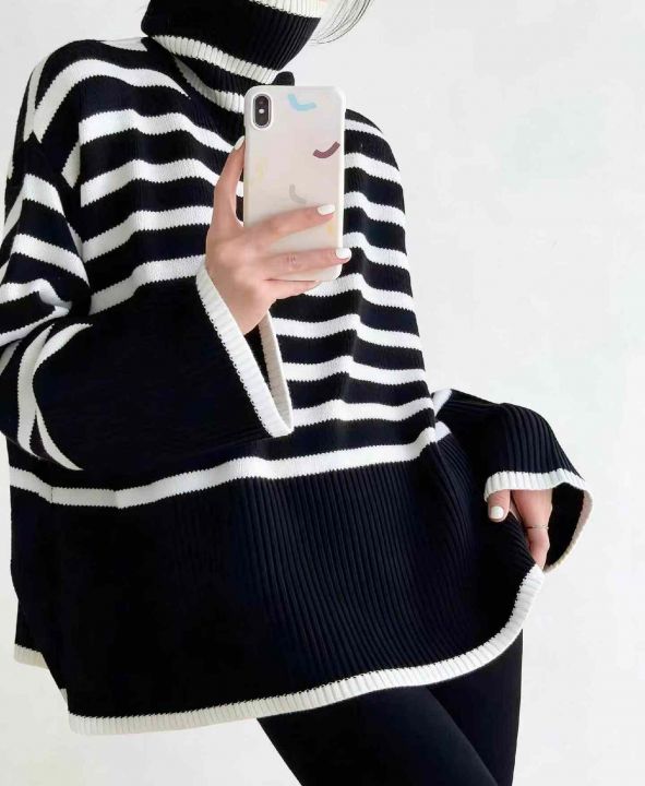 秋冬新款宽松慵懒风百搭撞色条纹针织套头毛衣,独立包装,均码面料软糯舒适宽松版,185件,全清7.9元超低价秒杀!