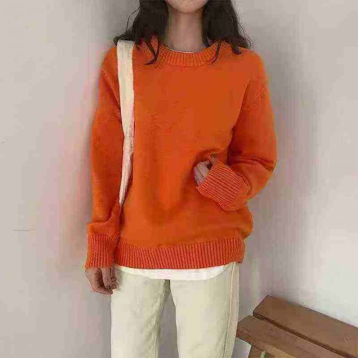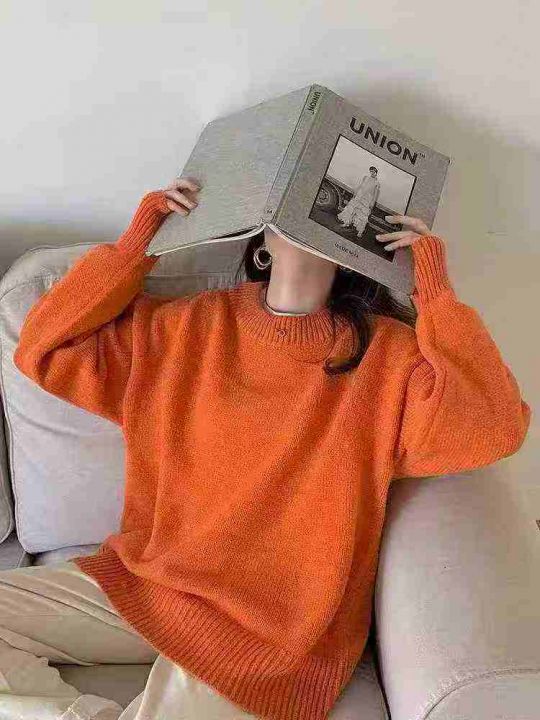 ☕️橘色套头毛衣35件全清10元,均码,宽松版,独立包装,毛衣宽松外穿秋冬新款上衣慵懒风加厚圆领橙色针织衫