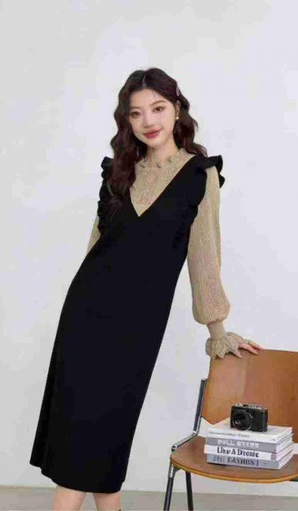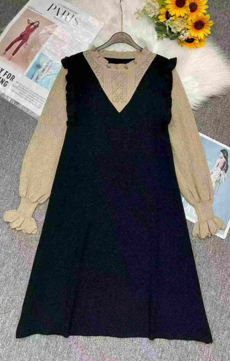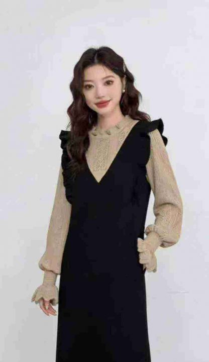 秋冬新款韩系气质荷叶边假2件复古宽松慵懒风针织毛衣连衣裙,独立包装,均码年龄软糯舒适弹力大,88件,全清9.9元超低价秒杀!