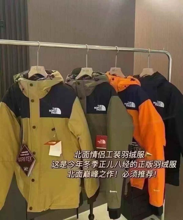北面MOUNTAIN拼色防水连帽GTX羽绒服 黑色 军绿 橙色 卡其 配清 100件起分 配比无敌。 货号:32539