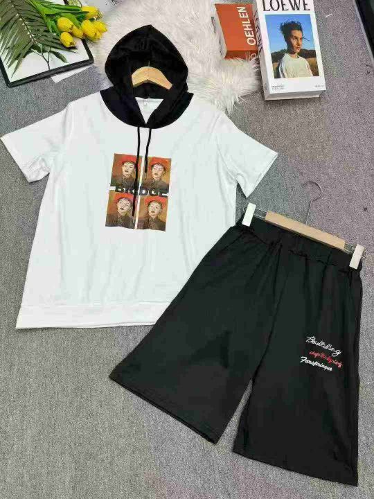 宽松韩版显瘦时尚印花运动服套装女夏天两件套洋气连帽短袖休闲服,独立包装,码数1-6,数量276套,货号129#7