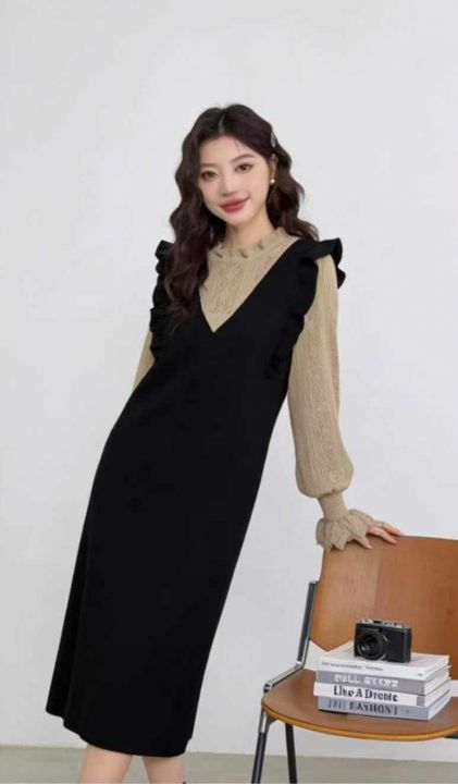秋冬新款韩系气质荷叶边假2件复古宽松慵懒风针织毛衣连衣裙,独立包装,均码年龄软糯舒适弹力大,88件,全清9.9元超低价秒杀!