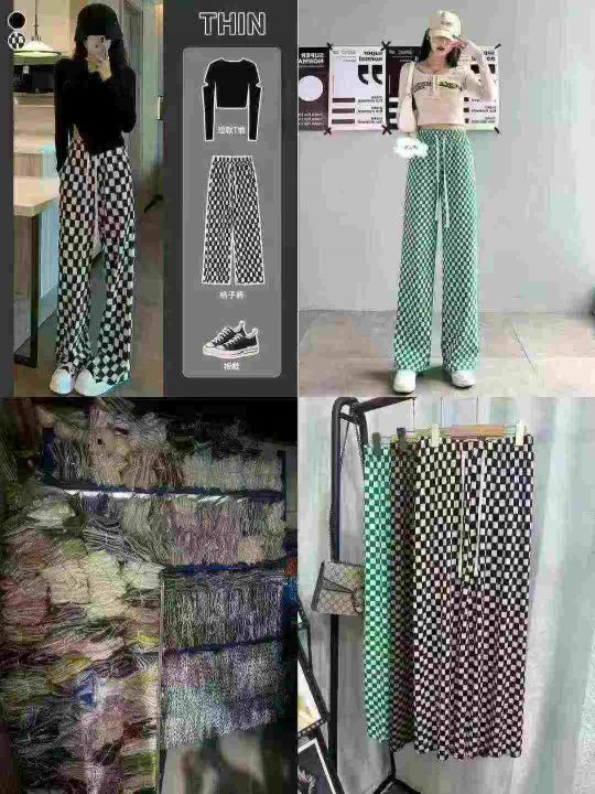 3360条泡芙裤女冰丝薄款宽松阔腿裤垂感棋盘格裤子,3个整款多个颜色,独立包装,码数S一XXL,全清7.8分货加1。 货号:24862