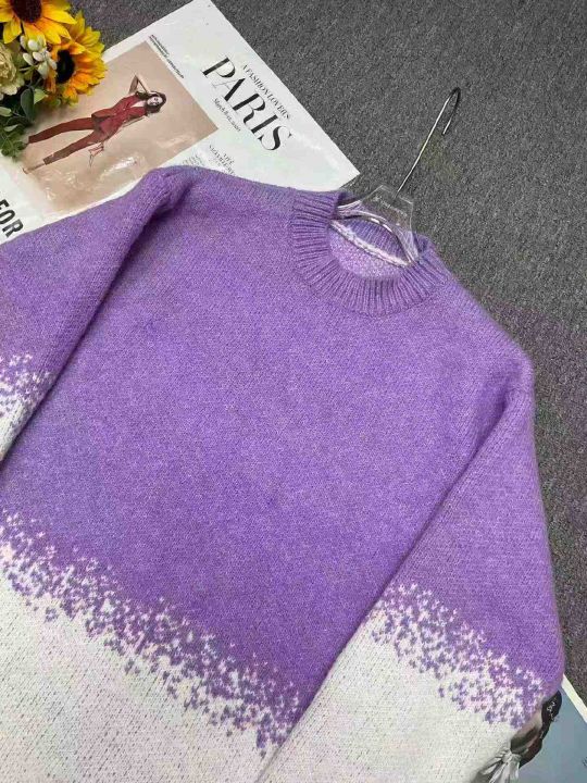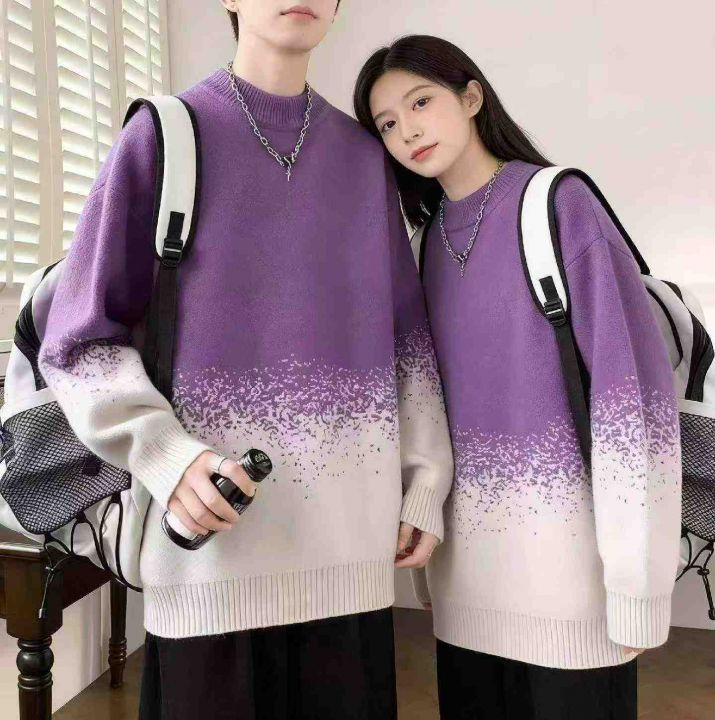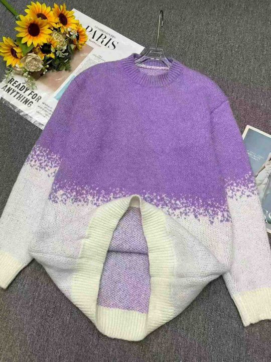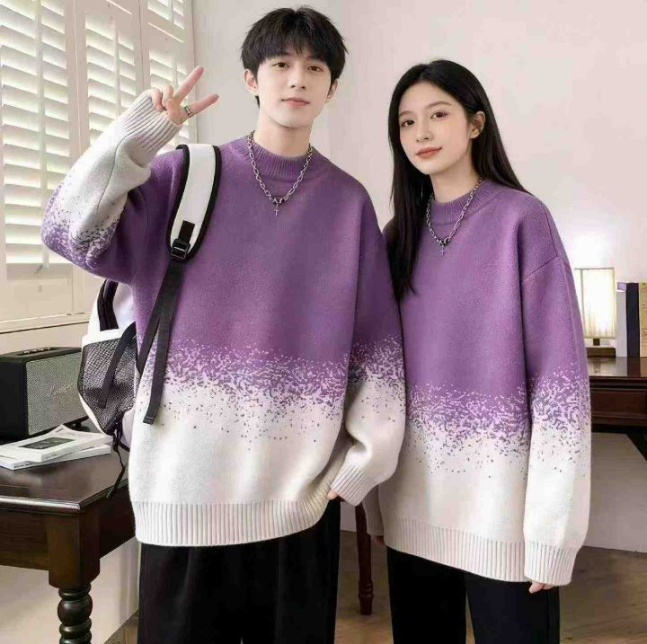 秋冬新款加厚男女同款渐变色圆领套头毛衣,独立包装,...