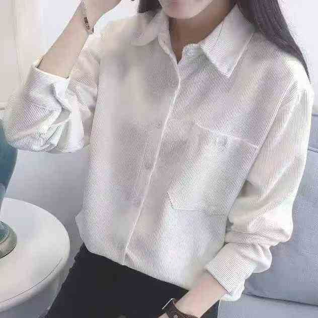 韩版宽松灯芯绒衬衫女2025新款长袖百搭口袋外套潮,独...