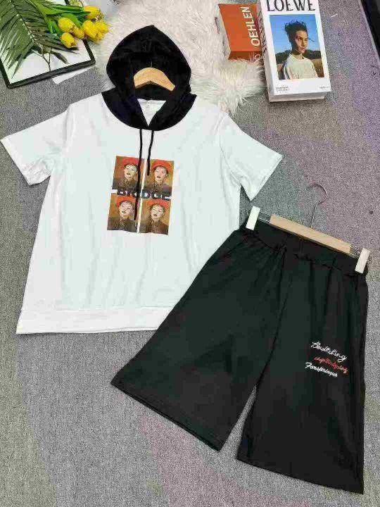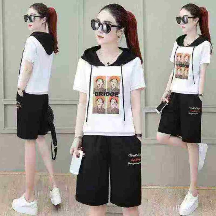 宽松韩版显瘦时尚印花运动服套装女夏天两件套洋气连帽短袖休闲服,独立包装,码数1-6,数量276套,货号129#7。 货号:24862