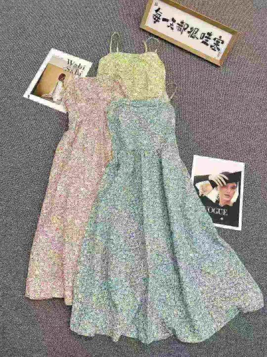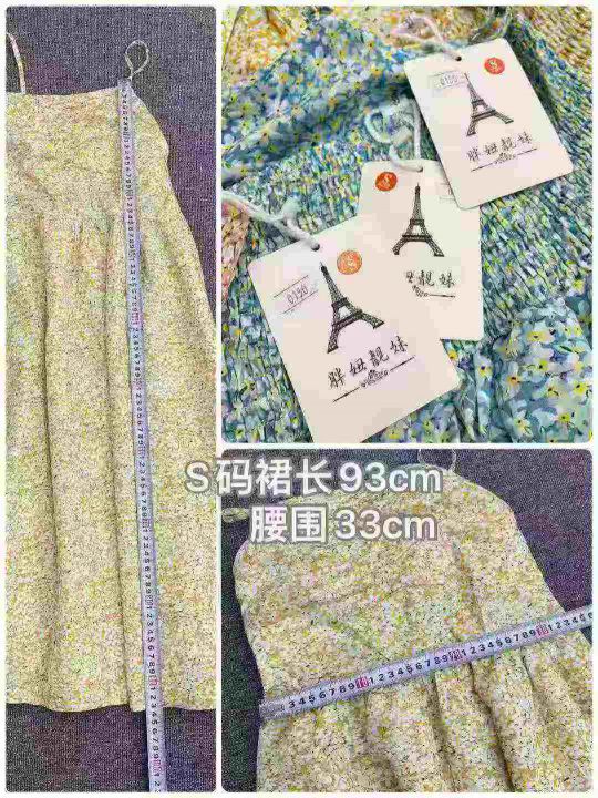 碎花吊带连衣裙643件8.9,后背松紧,肩带可调节,码数...