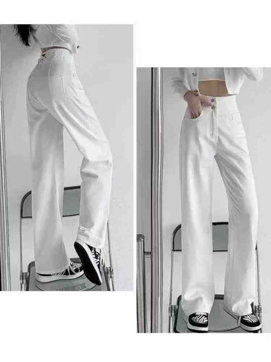 阔腿牛仔裤新款秋高腰宽松显瘦设计感交叉小众直筒长裤150件,单款两色,独...
