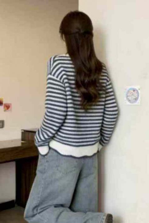 公司原单秋冬新款宽松慵懒等撞色条纹V领套头毛衣,独立包装,码数S- 2XL码...