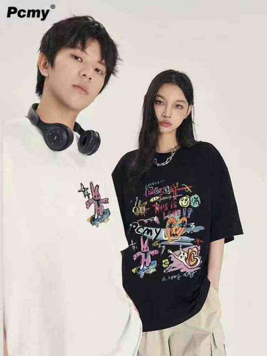 5.9清电商仓回收3394件潮牌男女同款印花宽松短袖T恤,...