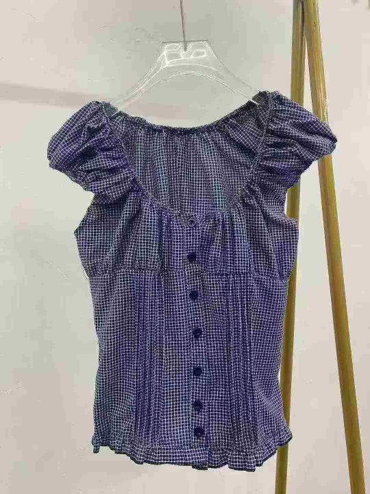 韩系复古格纹短袖衬衫187件7.9褶皱设计,荷叶边,码数1-4码,独立包装...