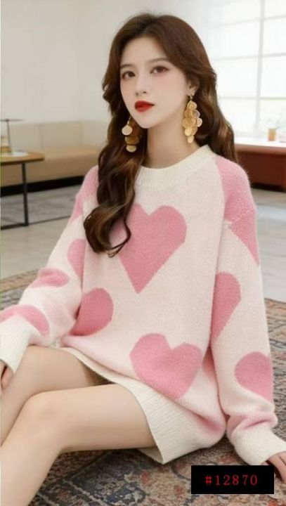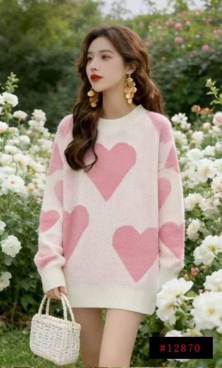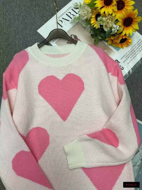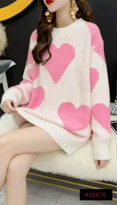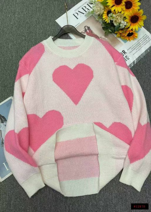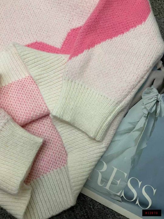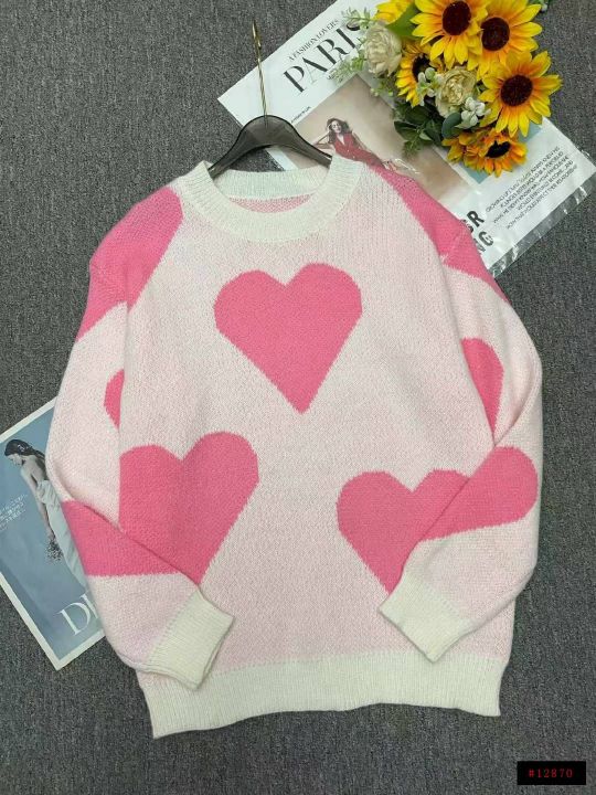 秋冬新款公司原单大版宽松慵懒风爱心提花北极绒套头毛衣,独立包装,码数S- 2XL码,90件左右,全清7.9元超低价秒杀!@_@