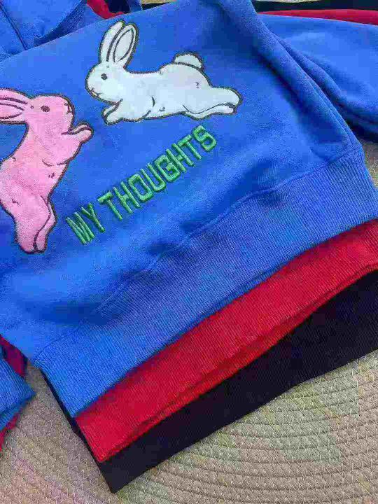 亏本清仓,不议价1469件高品质兔子刺绣连帽加绒儿童卫...